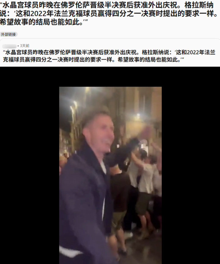 没问题。但放在比赛解读里,就有问题了。看到新闻,格拉斯纳允许球员在佛罗伦萨赛后出去放松庆祝;还有视频流出来,球员在街头心情很好,氛围很松。
